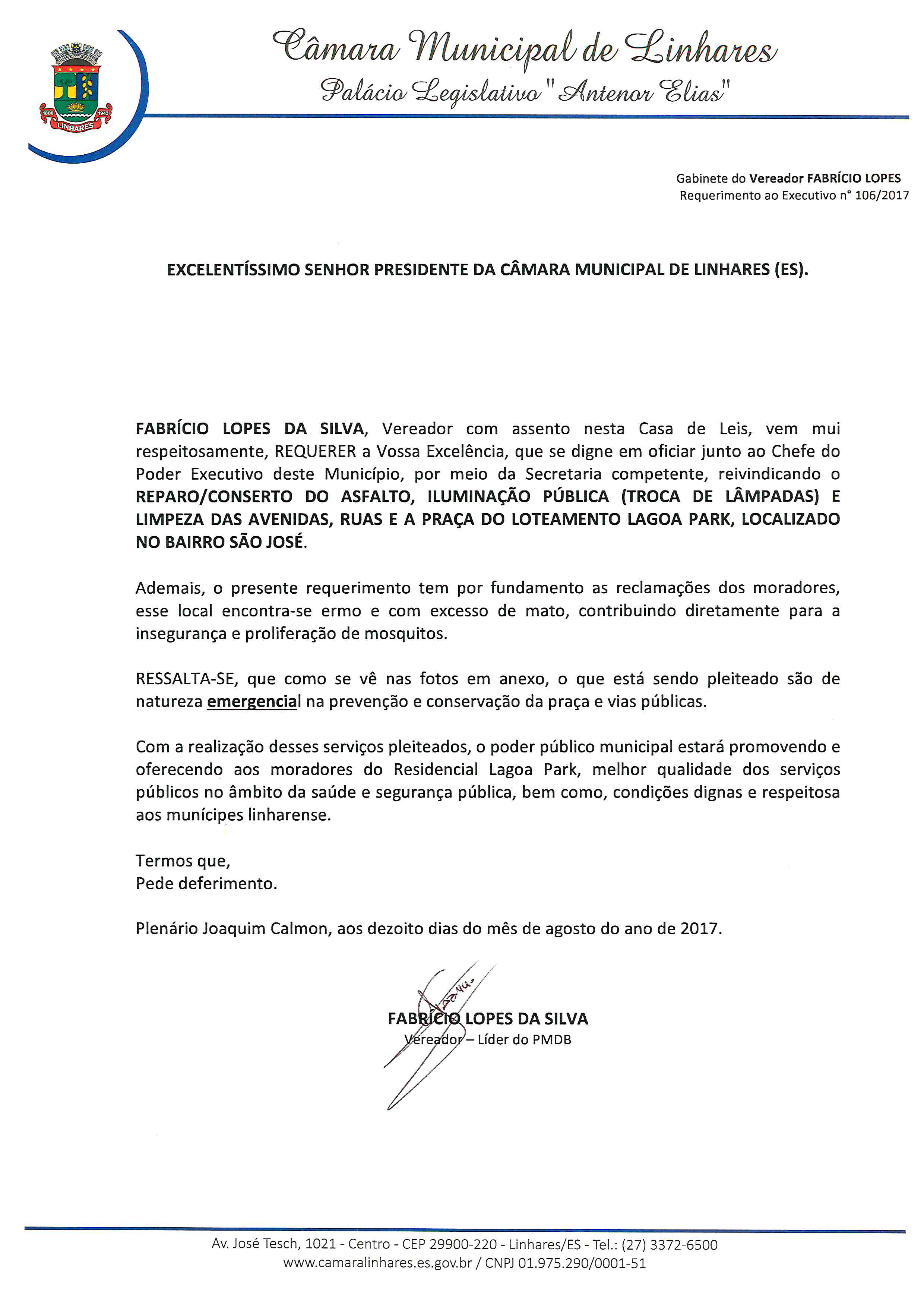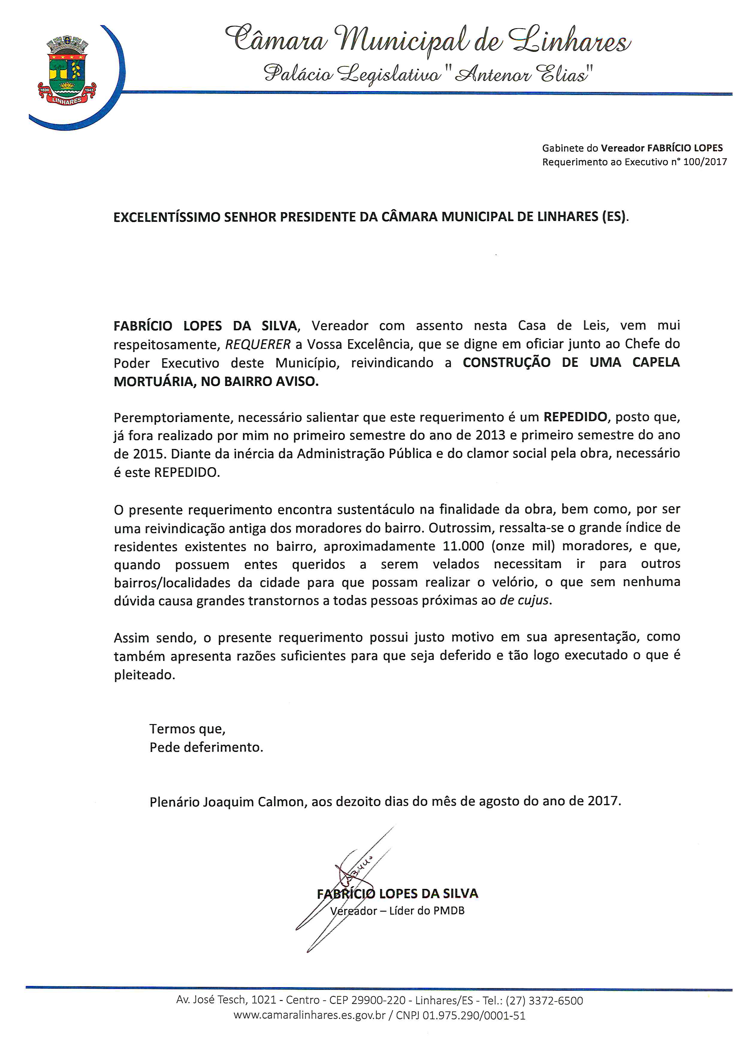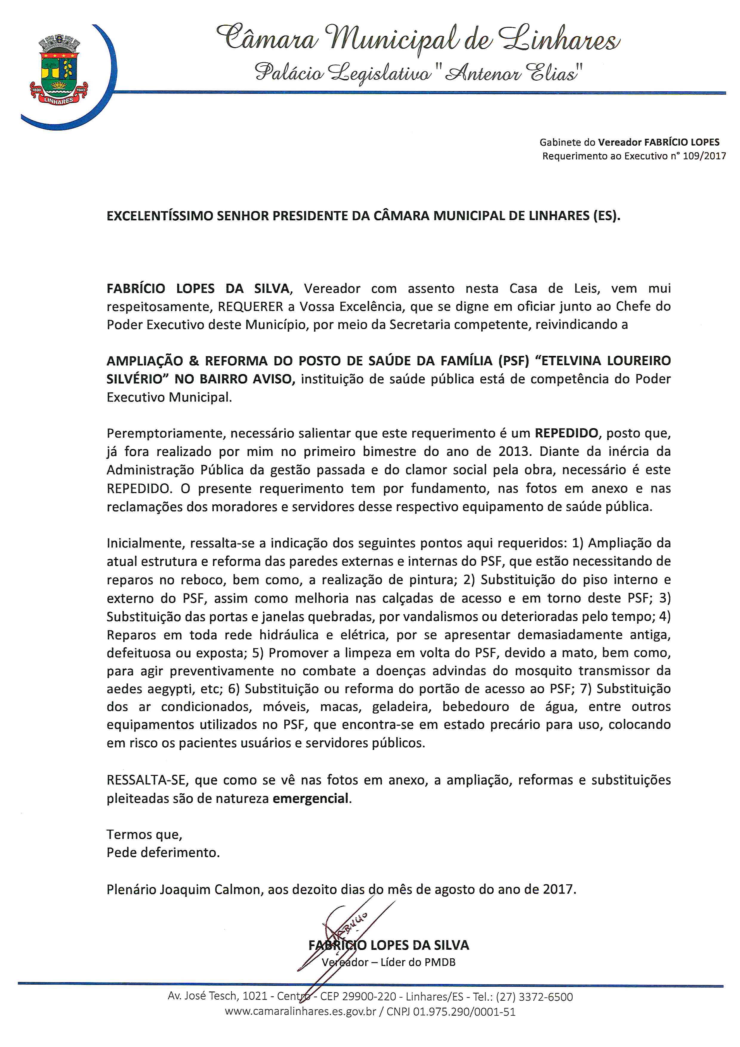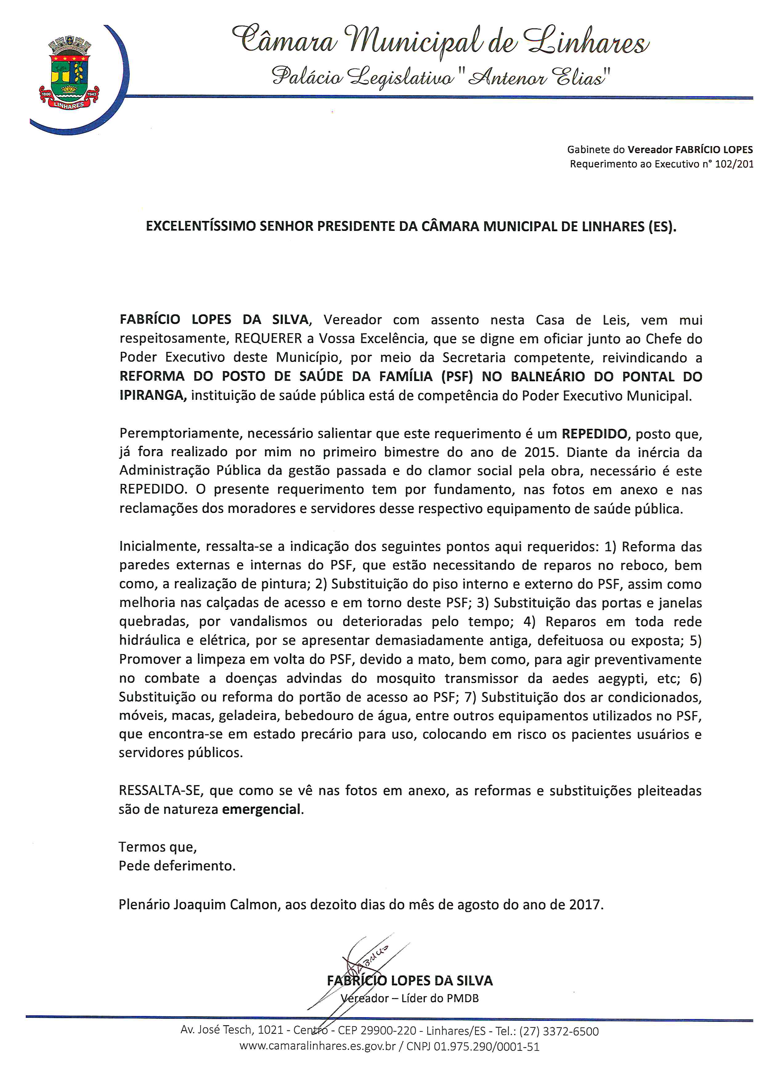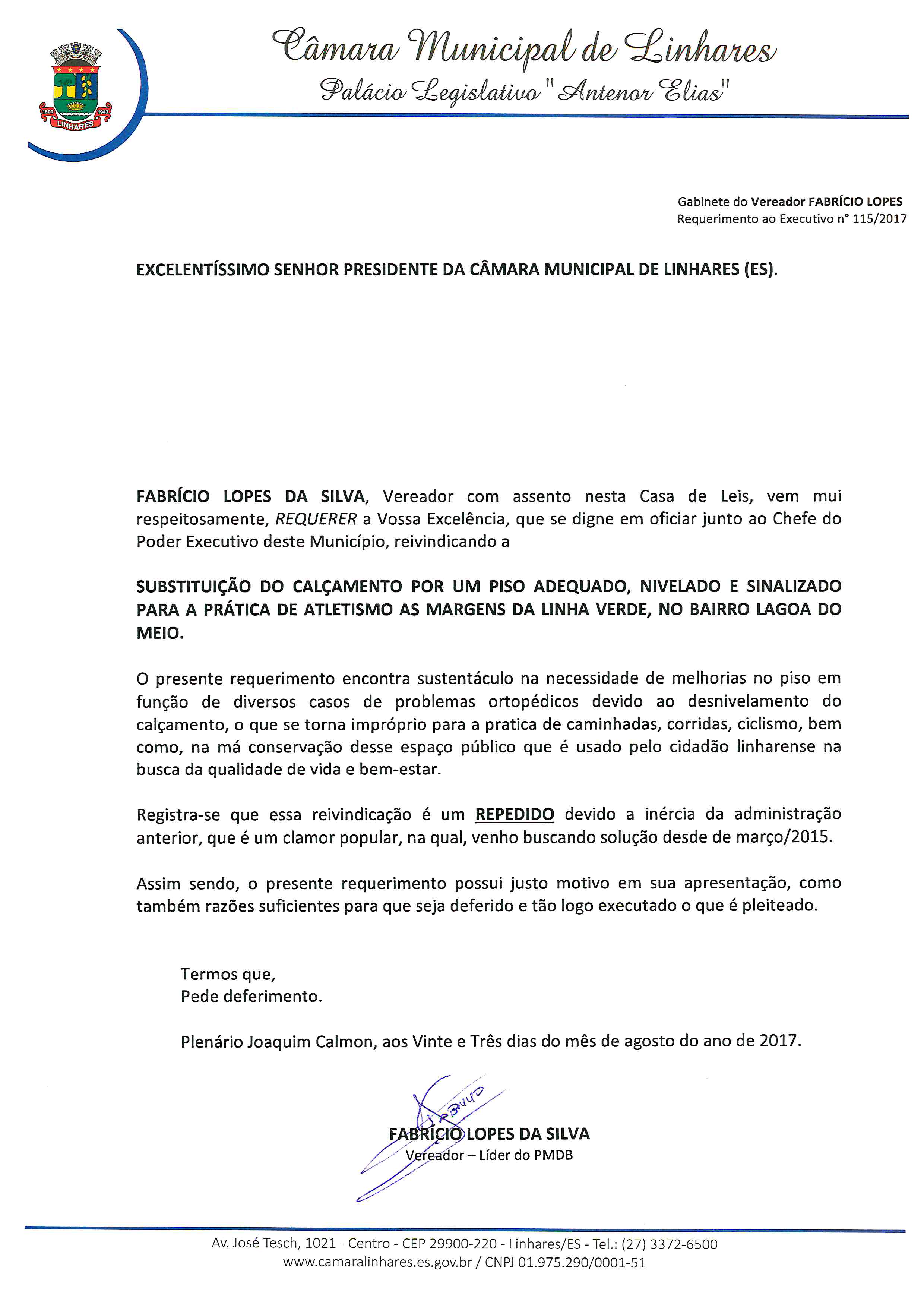 Última Ação: Enviado para arquivamento, ofício 0790/2017 recebido na prefeitura municipal no dia 04/09/2017.