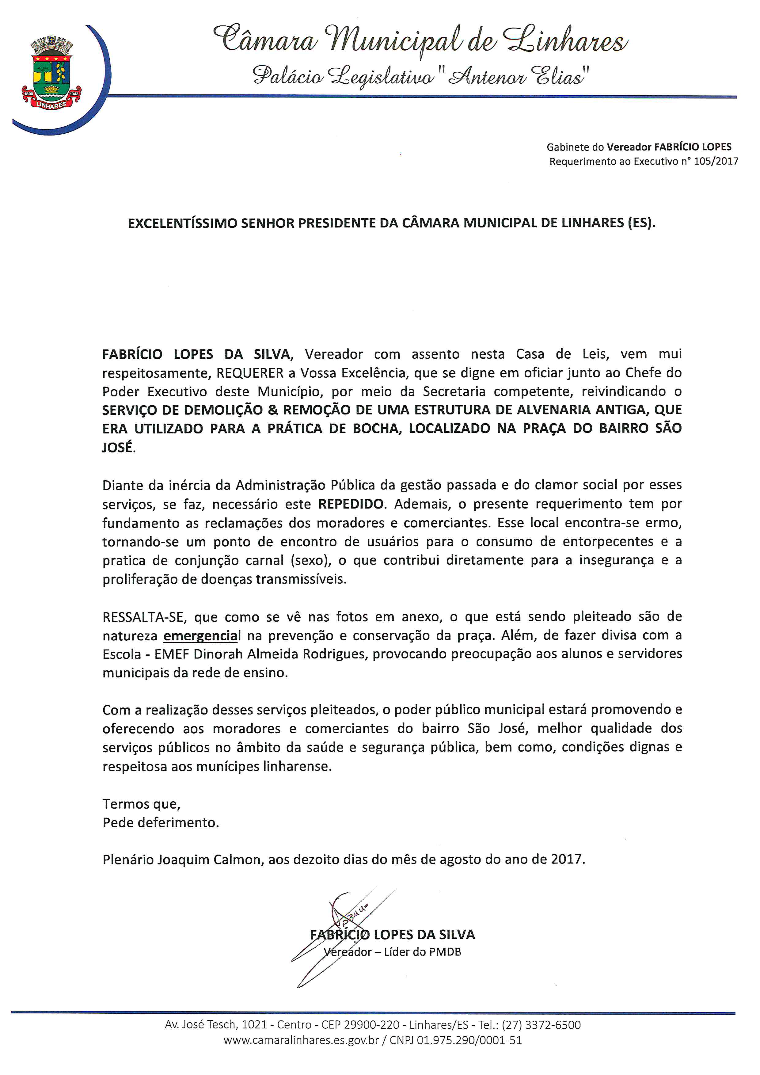 Última Ação: Enviado para arquivamento, ofício 0782/2017 recebido na prefeitura municipal no dia 04/09/2017.